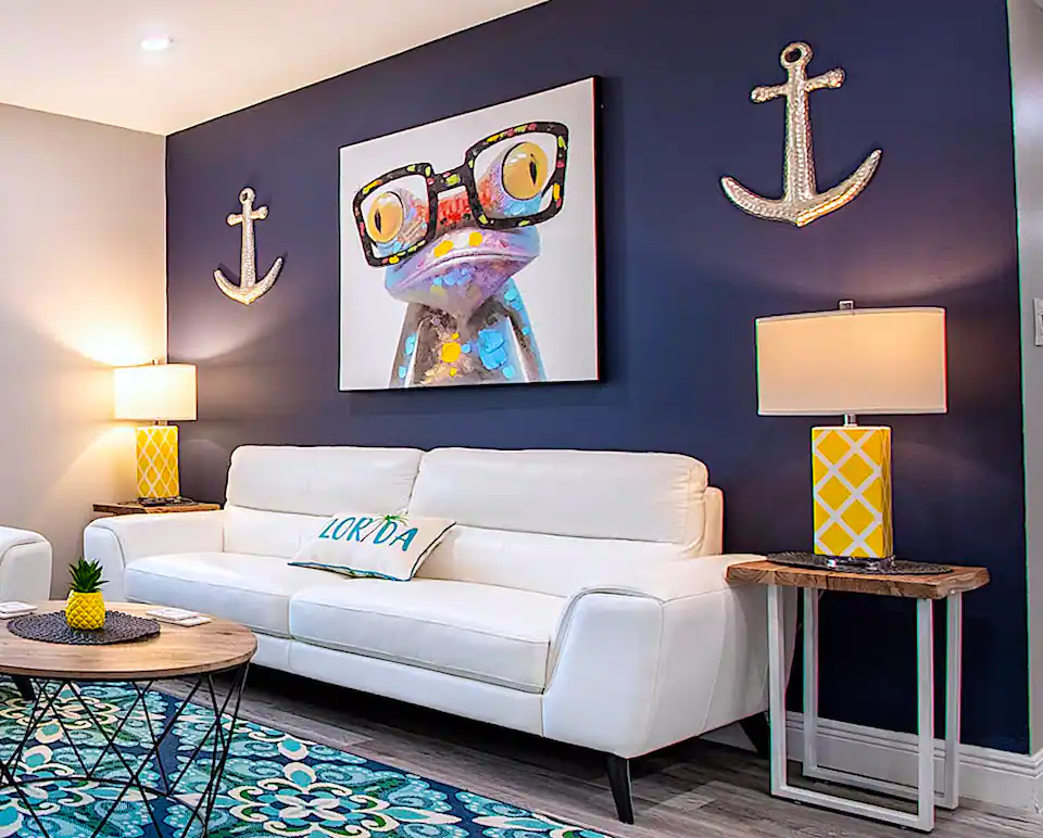 The home has a fun and whimsical design. Plenty of TV’s and places to hangout.