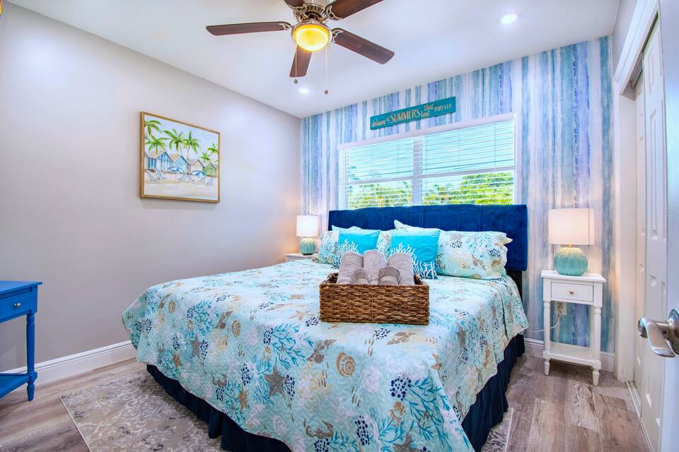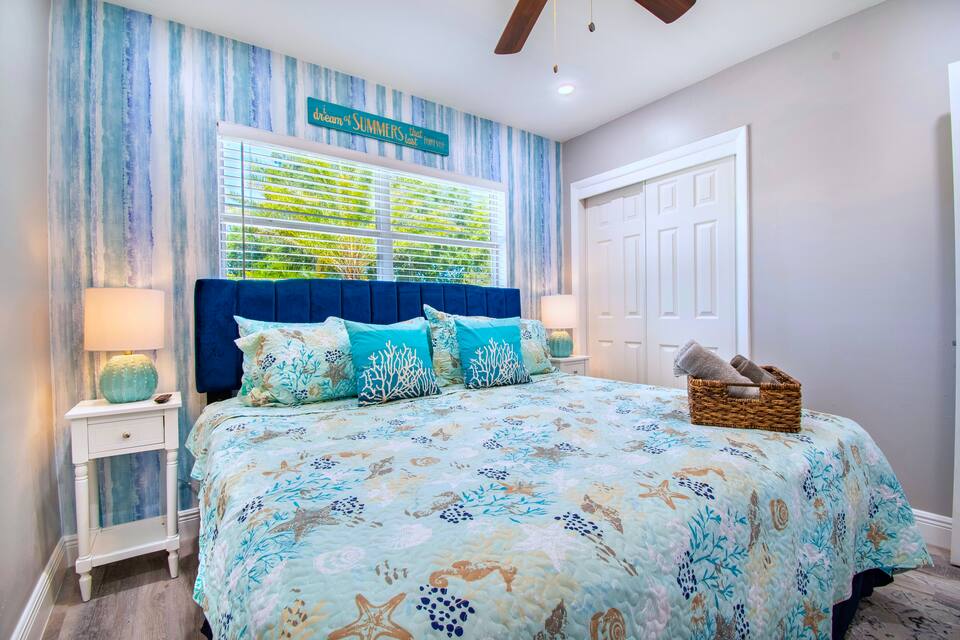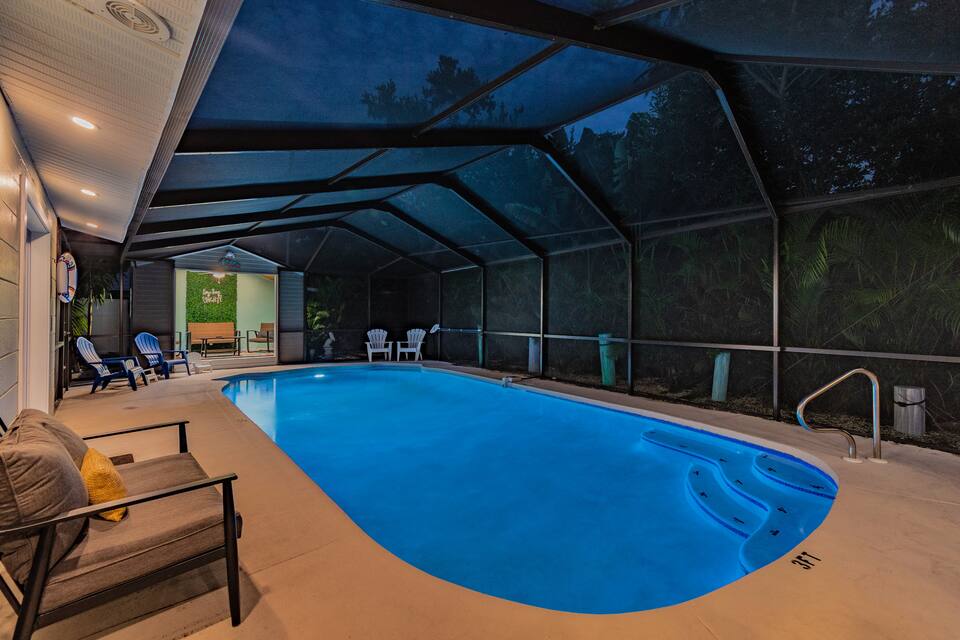 This 5 BR/3Bath home has a huge saltwater pool and SLEEPS 16. There is a poolside cabana, grill and outdoor lounge. SUPER location just 5 minute drive to the beaches & 25 mins to downtown! This home has a large kitchen, coffee bar and room to spread out with multiple seating areas. Optional heated pool for additional cost. Check my Airbnb profile for all 17 of our homes!