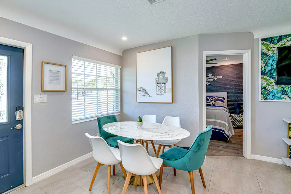 Miles and miles of sun-soaked beaches are just 6 minutes away! For shopping and dining, the fabulous Seminole City Center is a mere 2 minutes from your door. Craving vibrant city vibes? Downtown St. Pete is just a short 22-26 minute drive away, offering a plethora of restaurants, shops, and entertainment. The cute little ice-cream shop a block away is beyond cute!