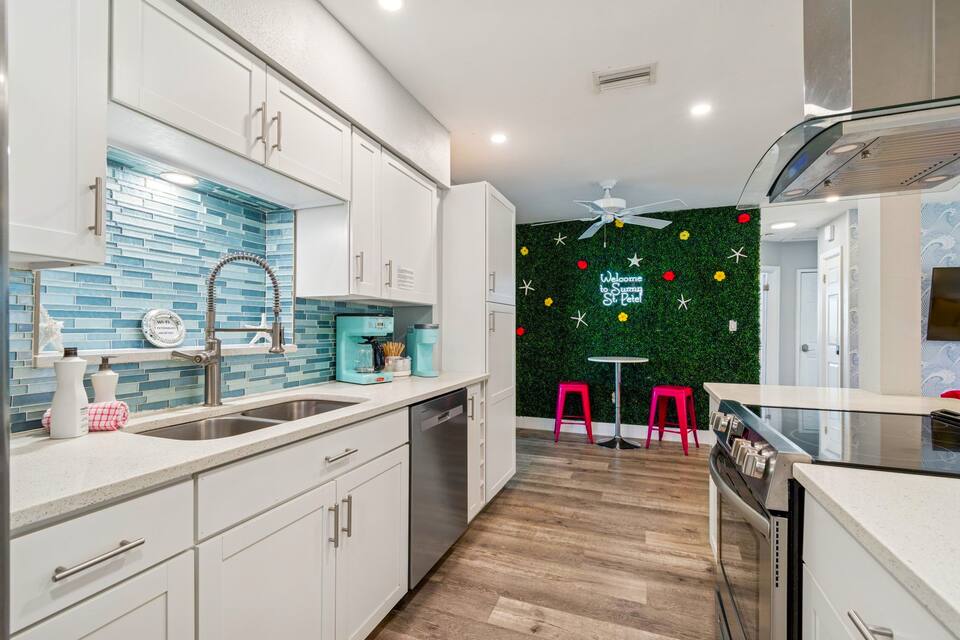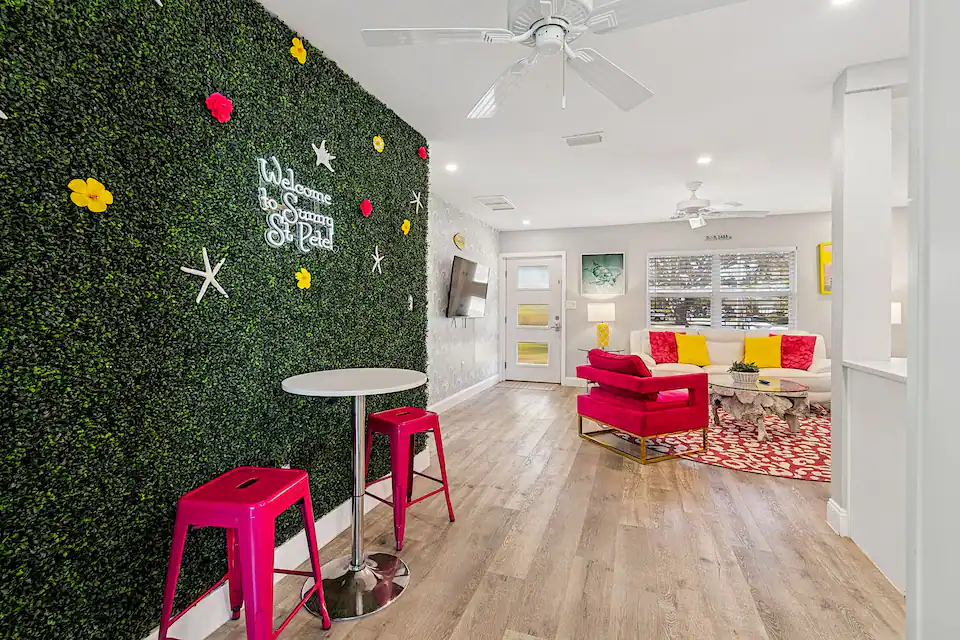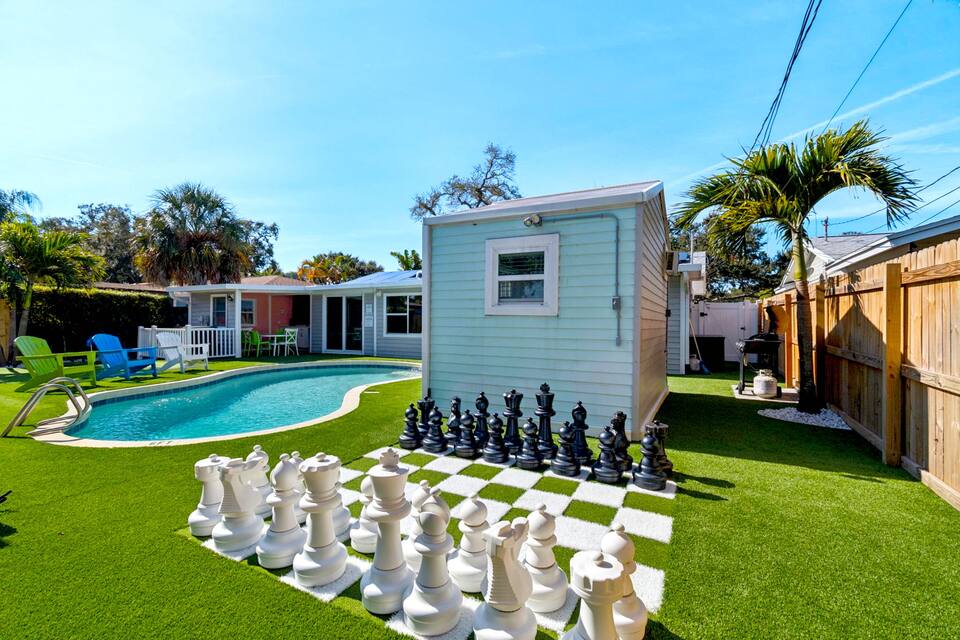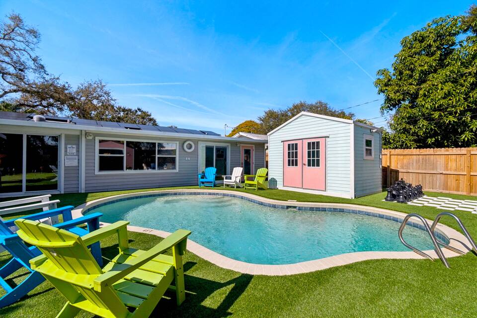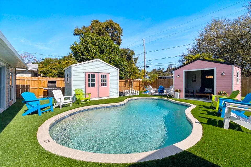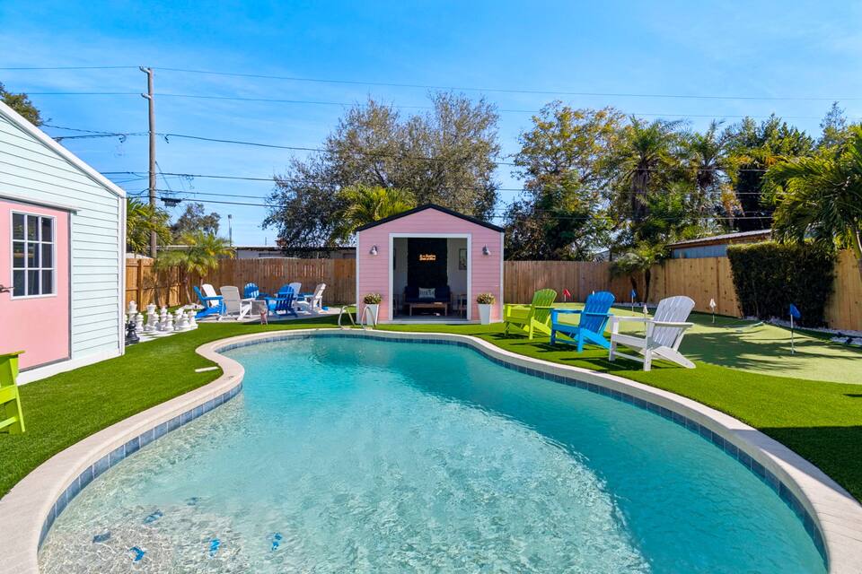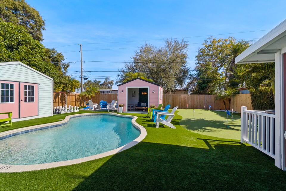 Very thoughtfully decorated throughout the house with a nod to St. Pete Beach! It was very clean & had a fun backyard complete with a pool, mini golf & cute shed & casita! Perfect for a fun getaway with friends or family!