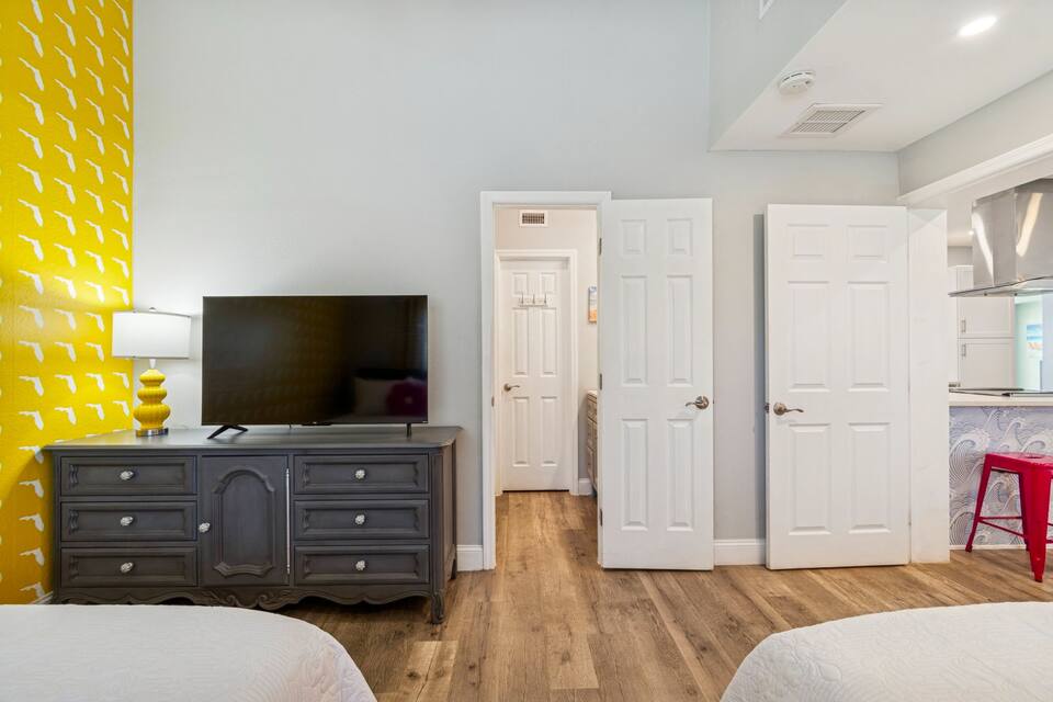 An adorable poolside bungalow offers the ultimate way to enjoy a unique tropical “glamping” experience! This private bungalow is equipped with a full-size bed, a Smart TV for your entertainment and air to keep you cool. Guests in the bungalow will access the pool bathroom that is just steps from the bungalow.