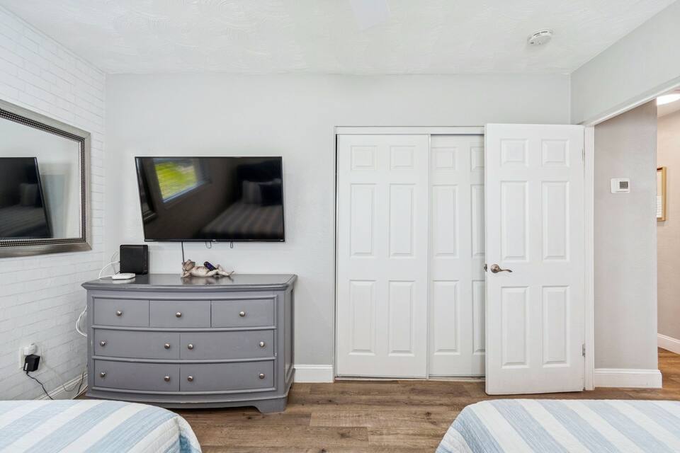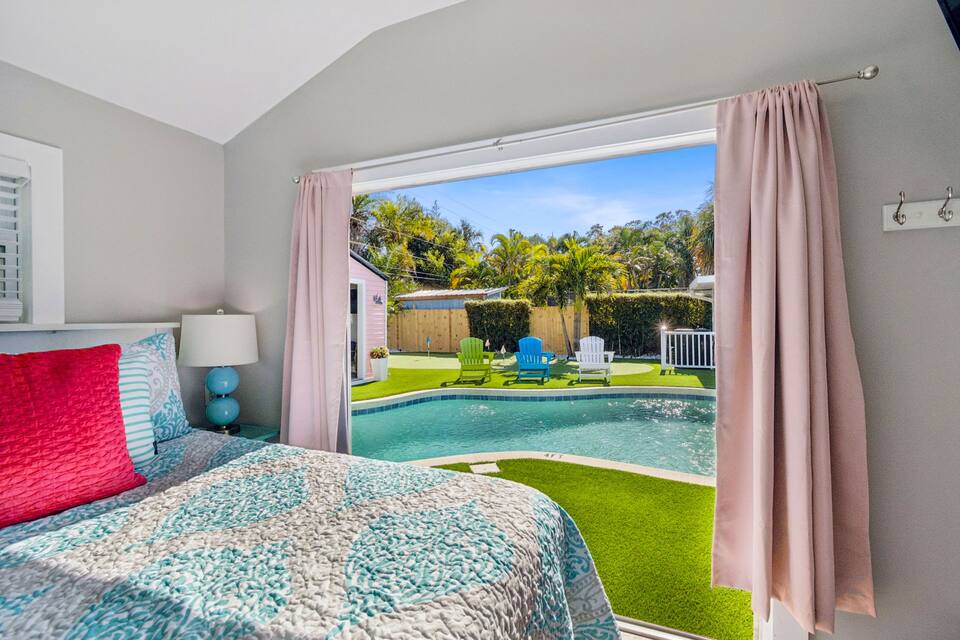 With FIVE beautifully furnished bedrooms and THREE FULL bathrooms, this home sleeps up to 16 GUESTS including the charming poolside guest bungalow. There is plenty of space for everyone here and you will be nestled in a great neighborhood 6 minutes from beaches!