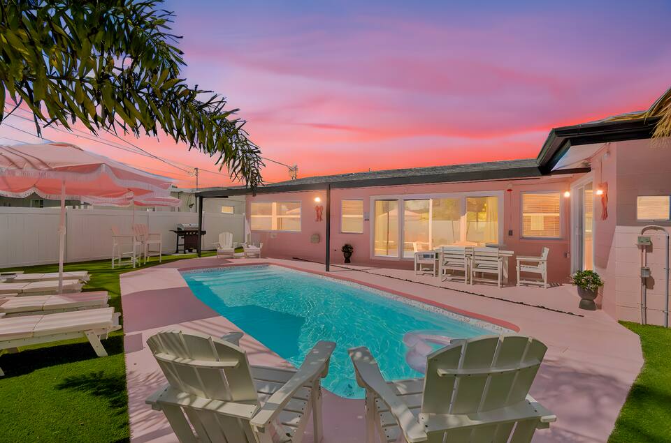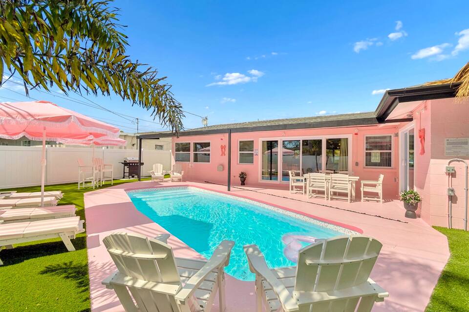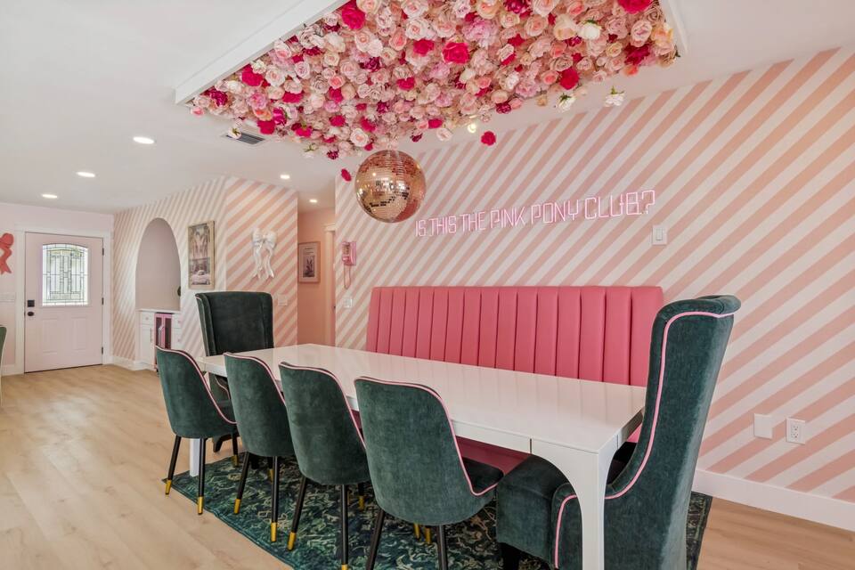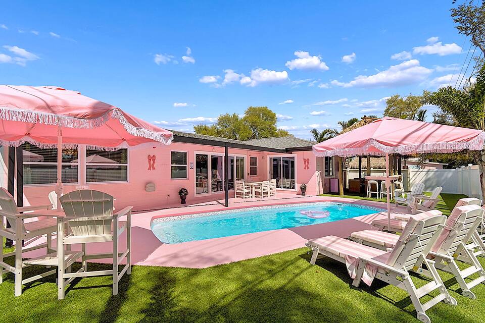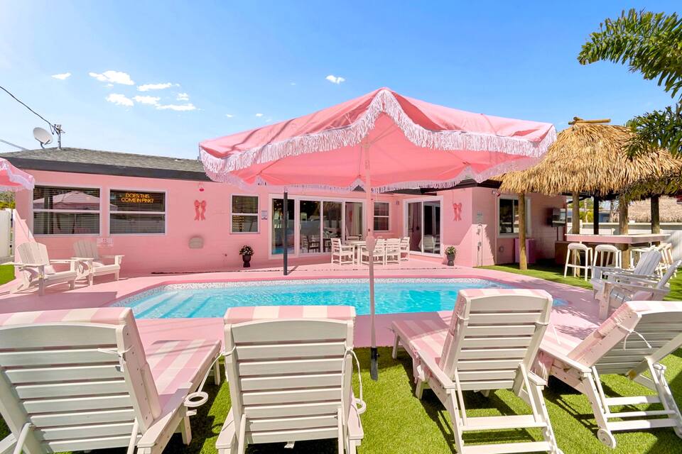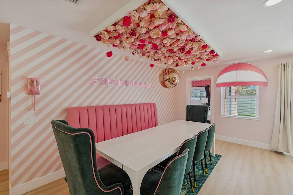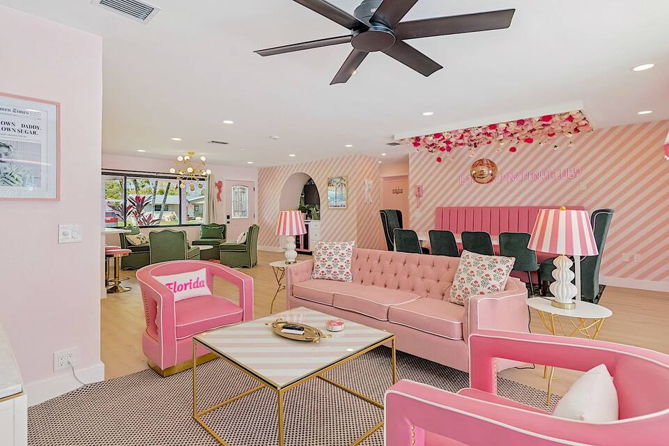 Welcome to the Pink Pony Club Pool House!🎀 Renovated head-to-toe in a celebration of PINK with 4 bedrooms+3 perfectly pink bathrooms. Every detail is stunning, bold and playfully PINK! Sleeps 16 guests.