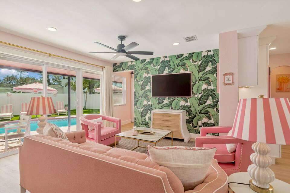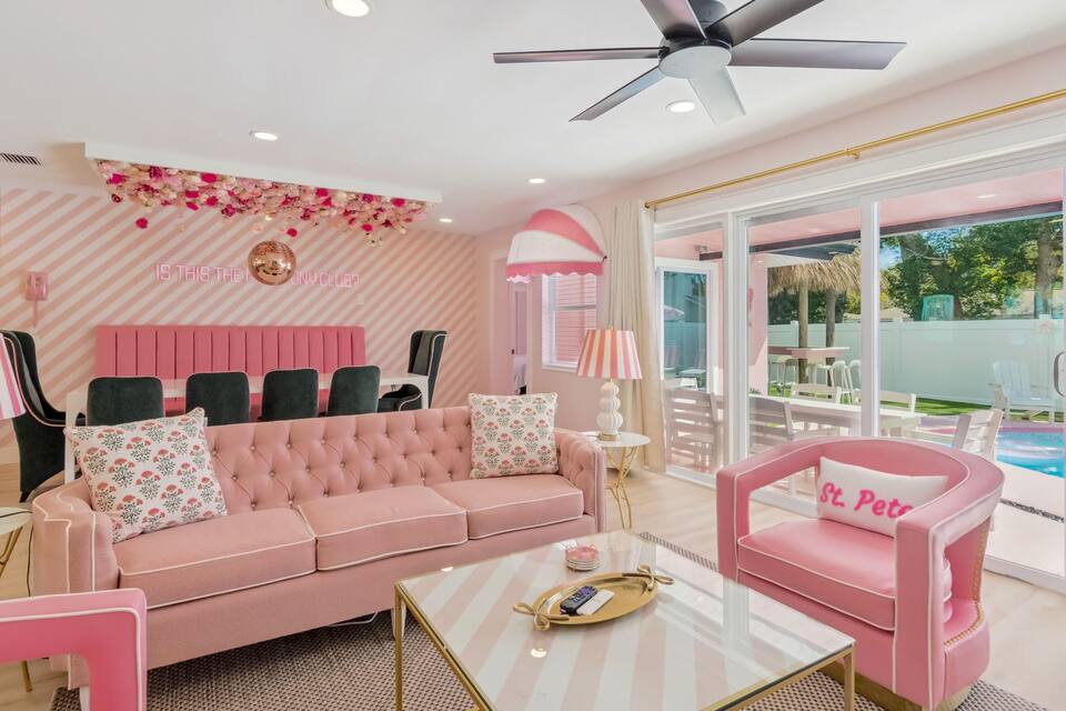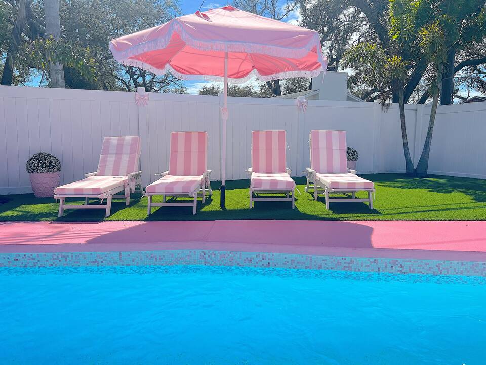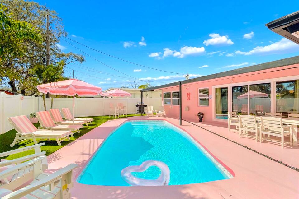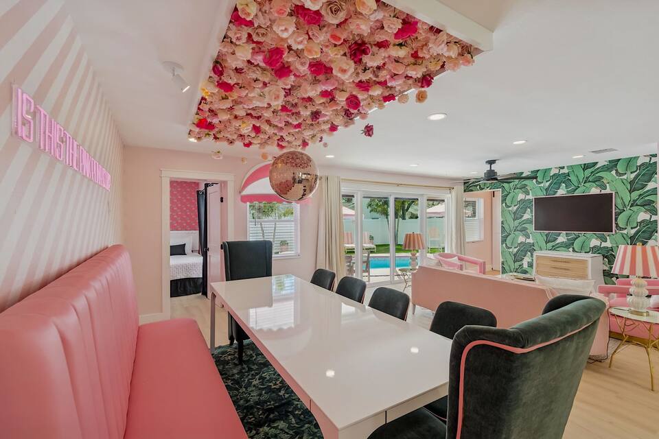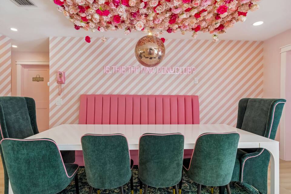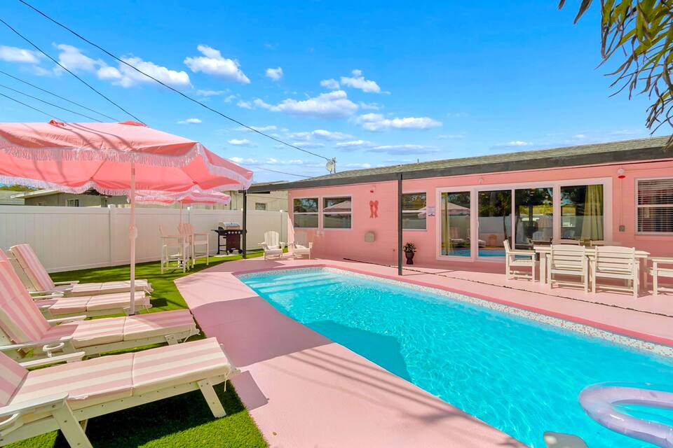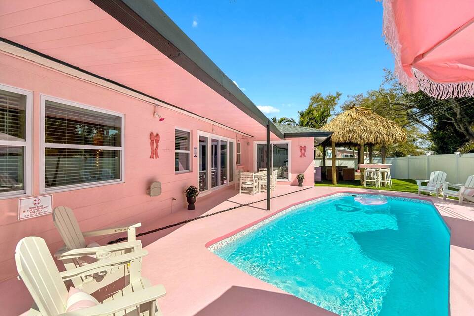 Welcome to the Pink Pony Club Pool House!🎀 Renovated head-to-toe in a celebration of PINK with 4 bedrooms+3 perfectly pink bathrooms. Every detail is stunning, bold and playfully PINK! Sleeps 16 guests.