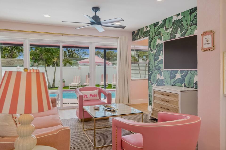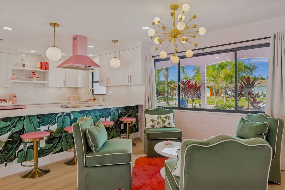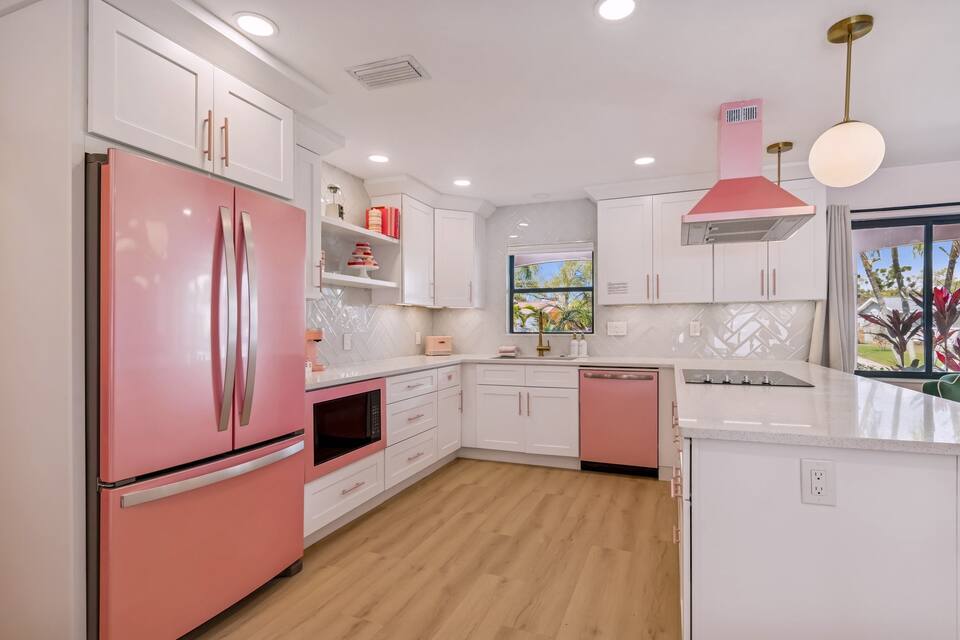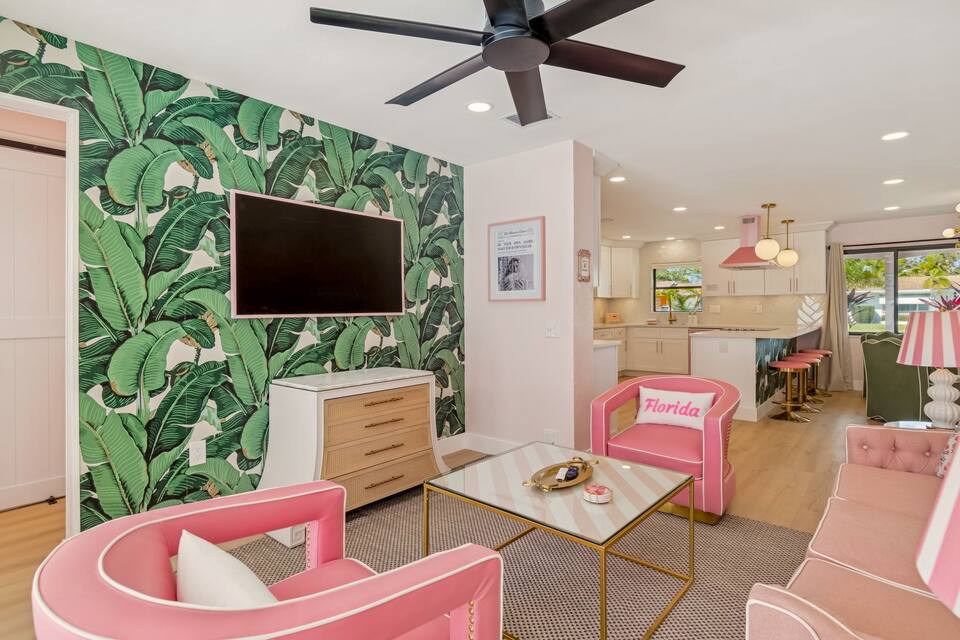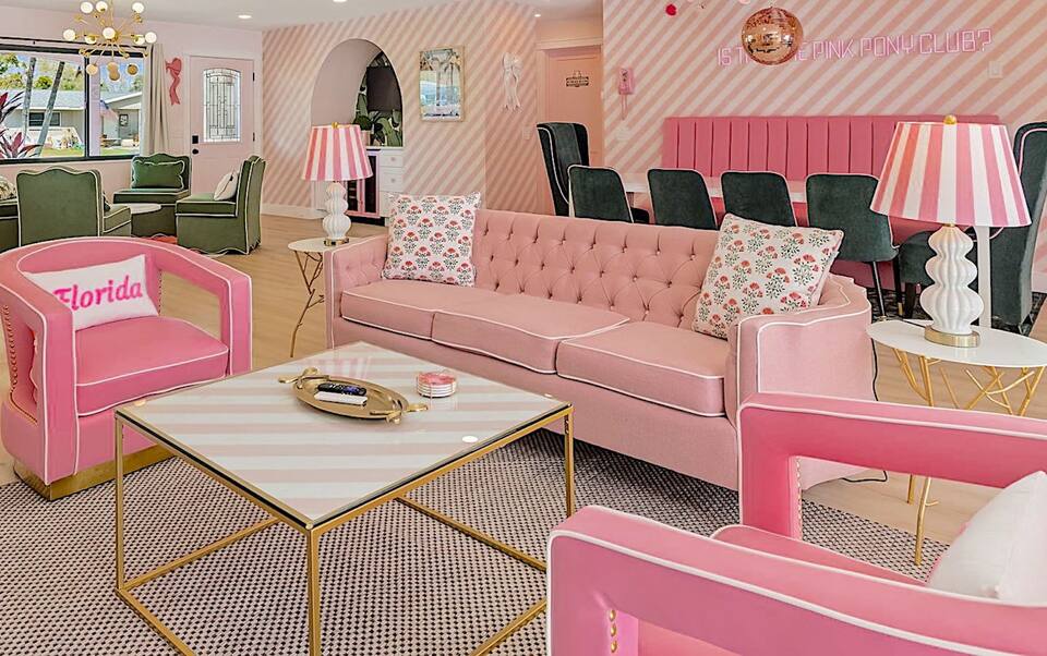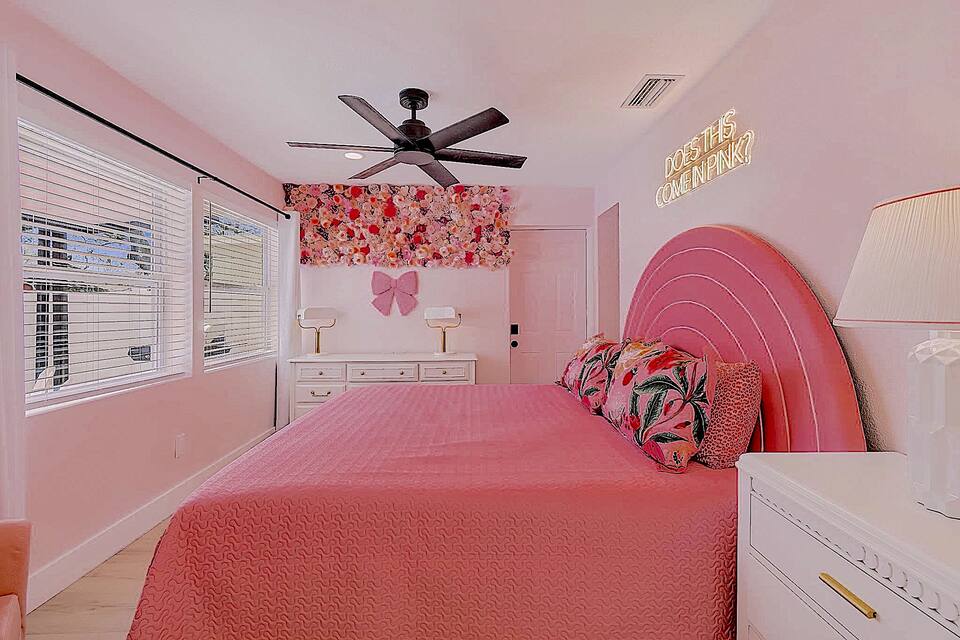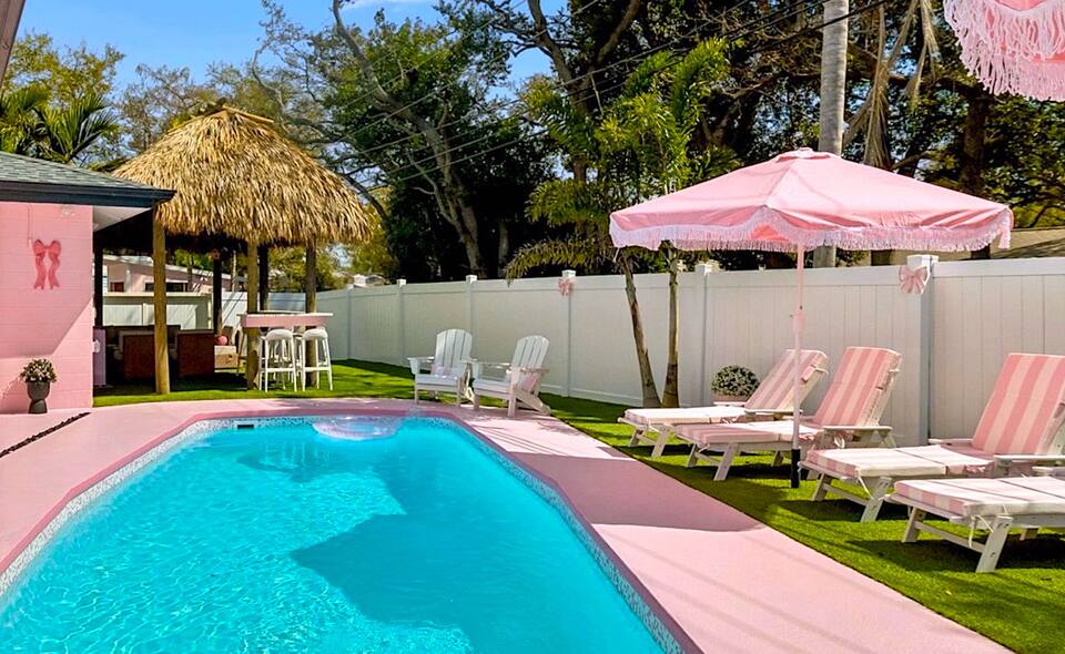 Welcome to the Pink Pony Club Pool House!🎀 Renovated head-to-toe in a celebration of PINK with 4 bedrooms+3 perfectly pink bathrooms. Every detail is stunning, bold and playfully PINK! Sleeps 16 guests.